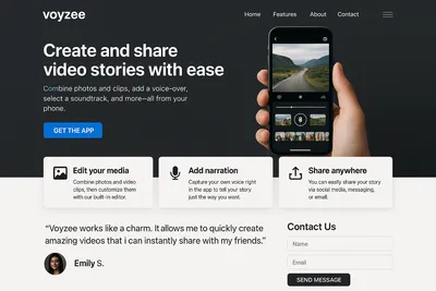 Voyzee is a fun and fast way to create and share beautiful video stories featuring your own voice-over narration – all from your iPhone or Android phone. With Voyzee, combine and edit your photos and video clips or capture new content right from the app. Edit media, add your own voice and captions, then choose a soundtrack. Easily share your creation via email, SMS, Facebook, or Twitter – it’s that easy.